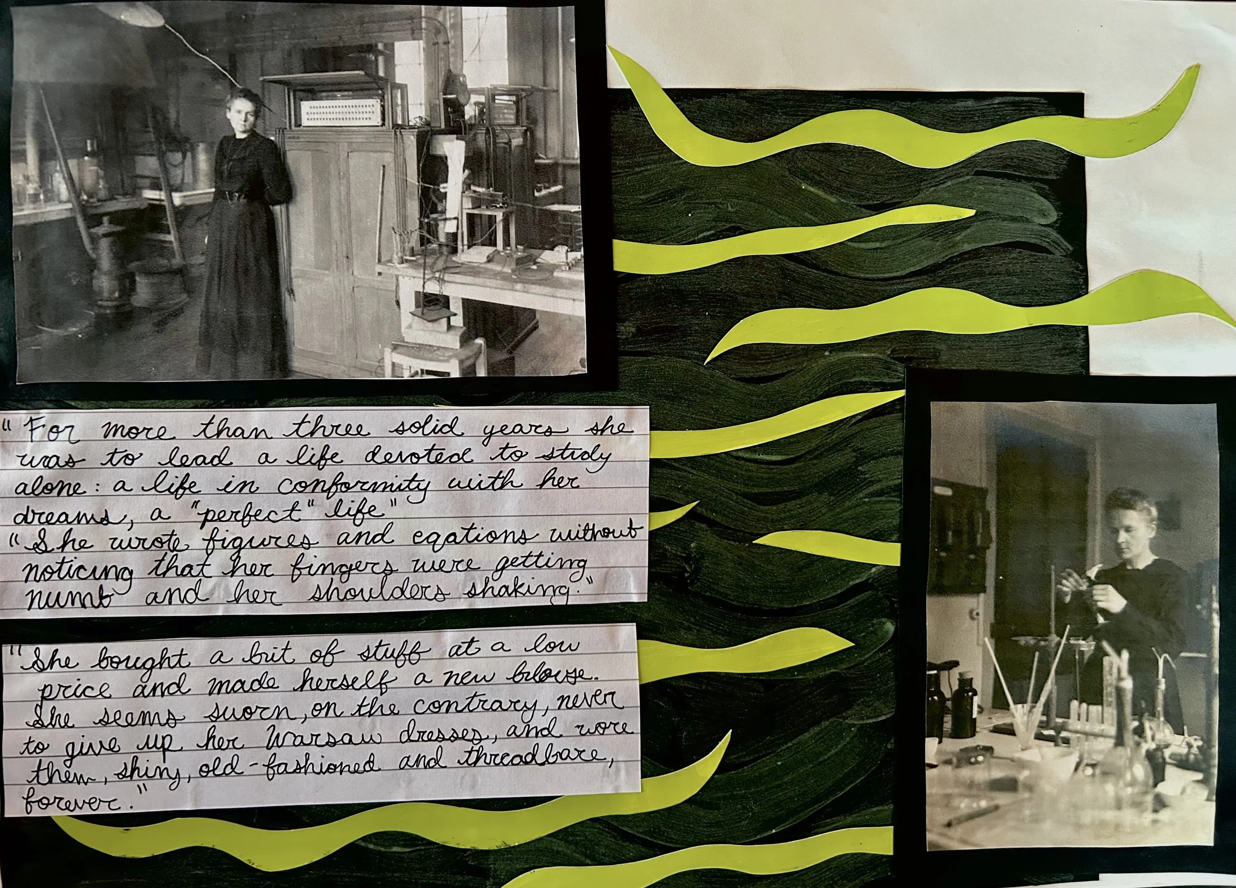 My inspiration for this collection began with Marie Curie. She had an intense passion for chemistry and persevered to achieve her dream of working in a laboratory. Madame Curie spent all day studying and discovering. It was an obsession.